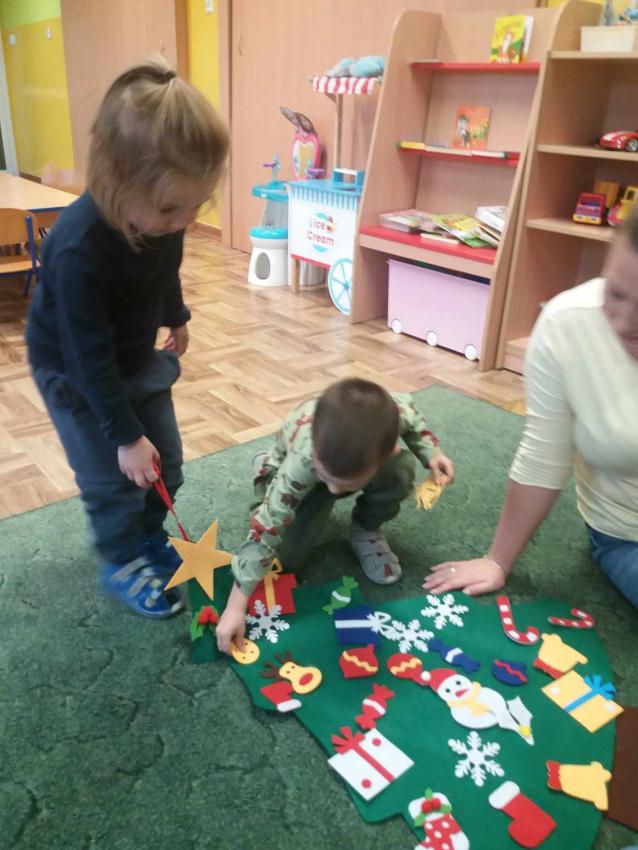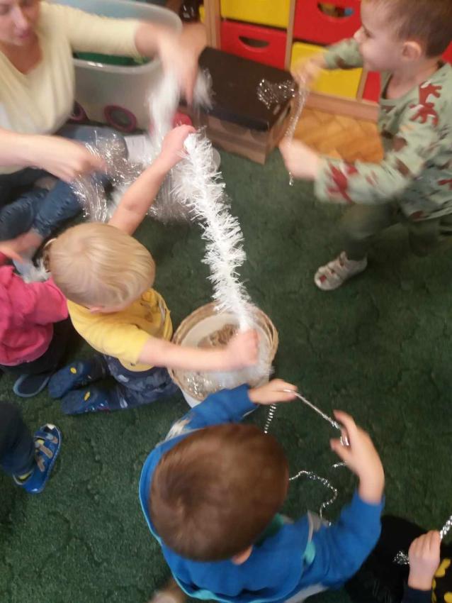 Sensoryczne zajęcia świąteczne z mamą Rozalki w grupie Żabki