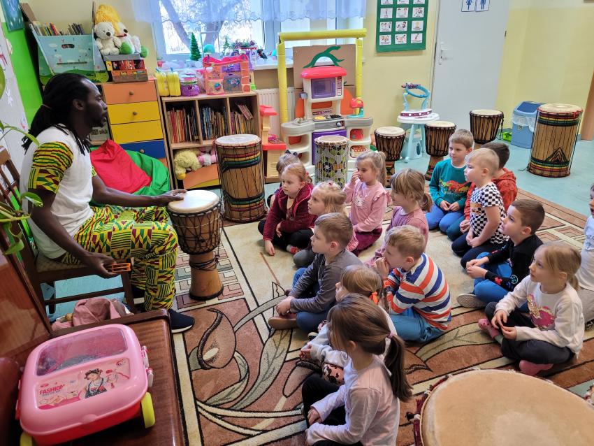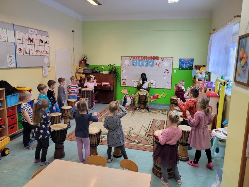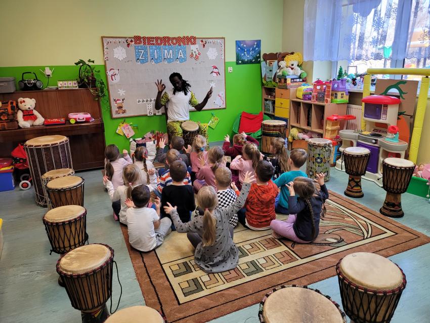 Afrorytmika-warsztaty bębniarskie w grupie Biedronki