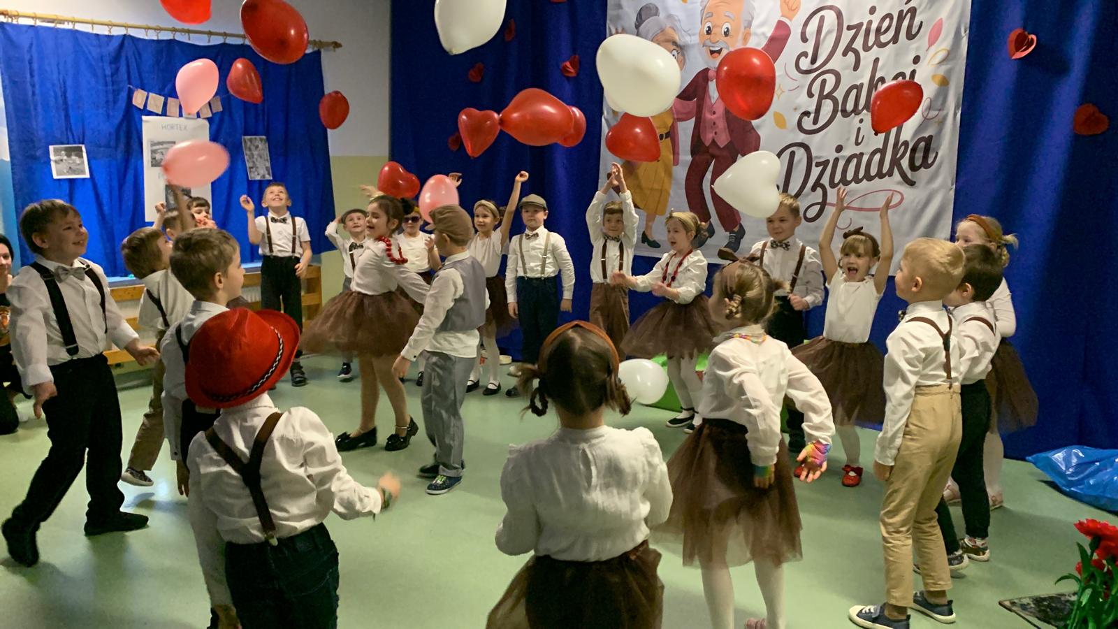 Po występach dzieci zaprosiły swoich ukochanych Dziadków do wspólnych zabaw – pełnych radości, bliskości i uśmiechu. Śmiech niósł się po całym przedszkolu.