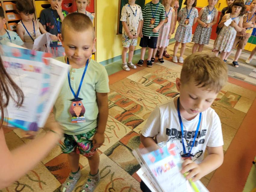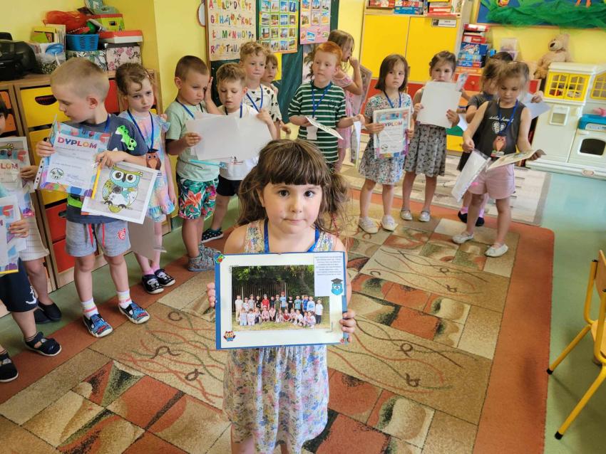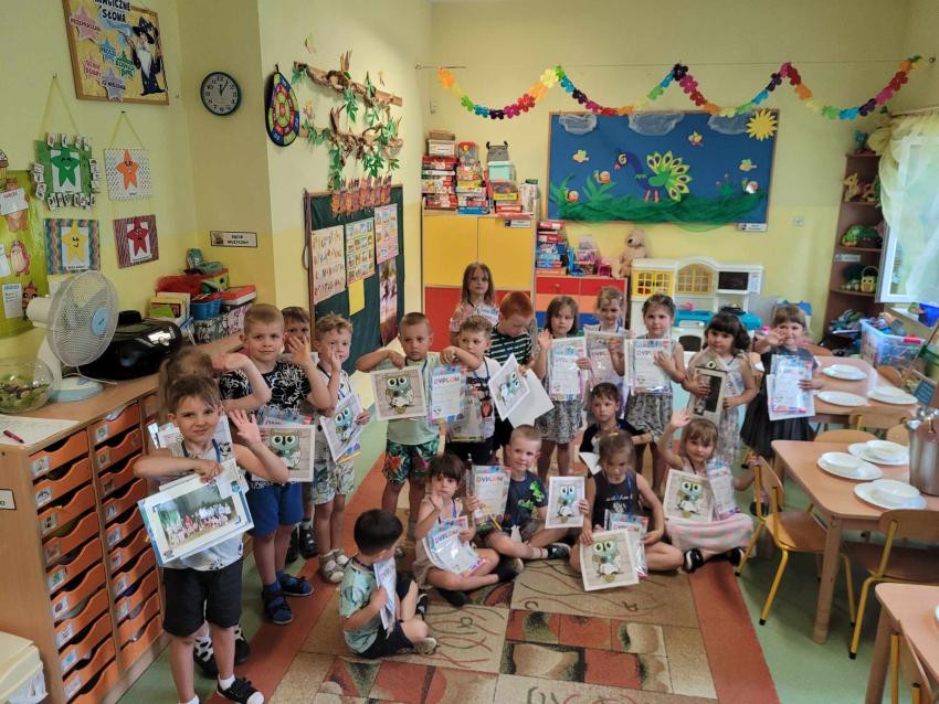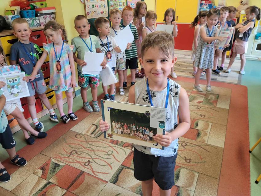 Zakończenie roku przedszkolnego w grupie Sówek-pożegnanie odchodzących dzieci .