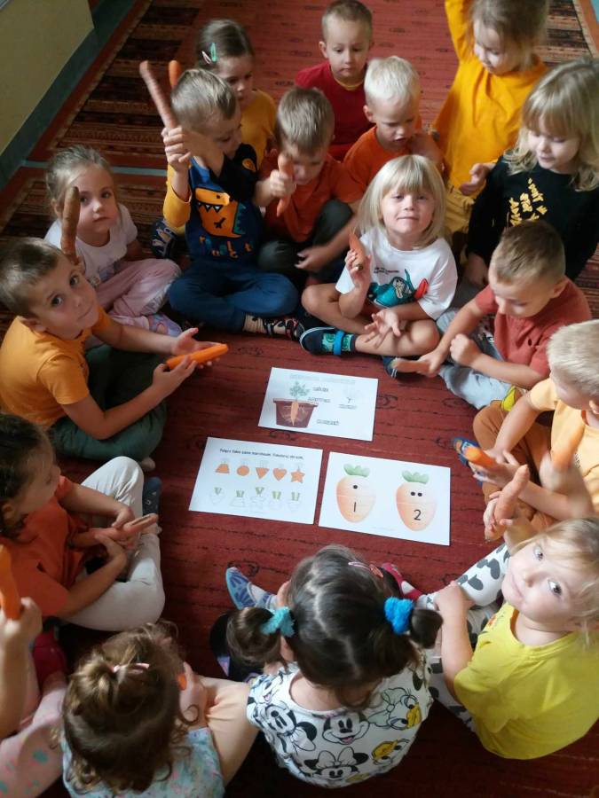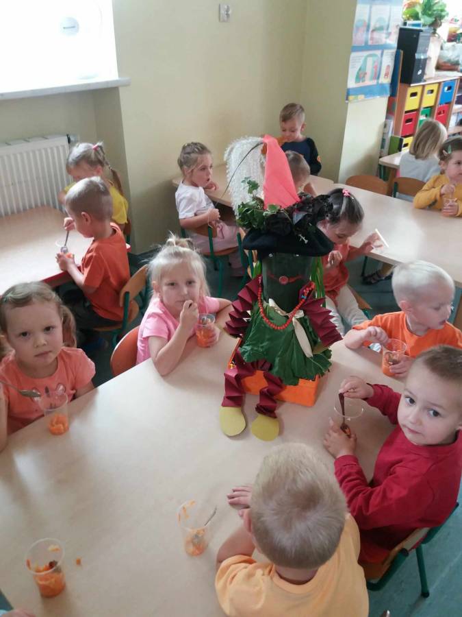 Dzień Marchewki z Jesiennym Skrzatem w grupie Żabki.