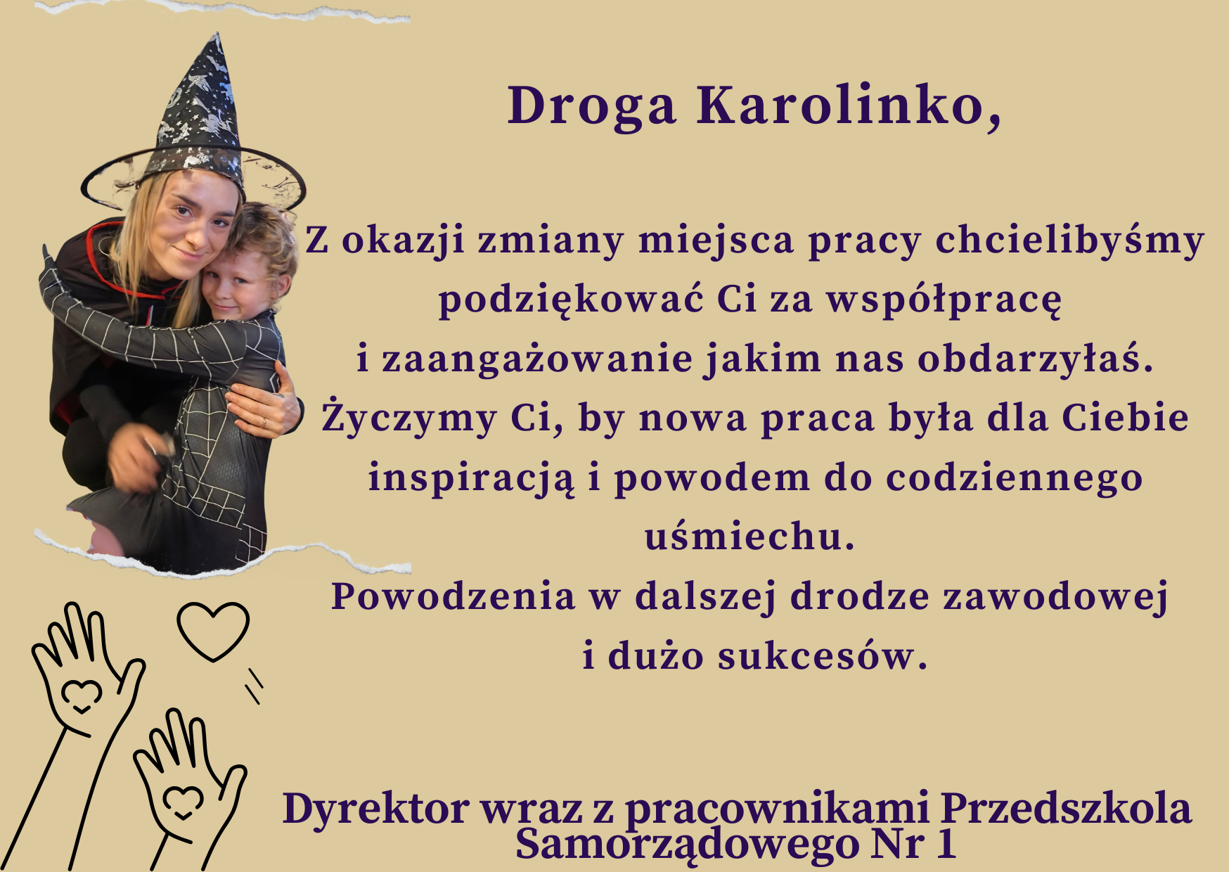 w imieniu Pani Dyrektor oraz wszystkich pracowników Przedszkola Samorządowego Nr 1