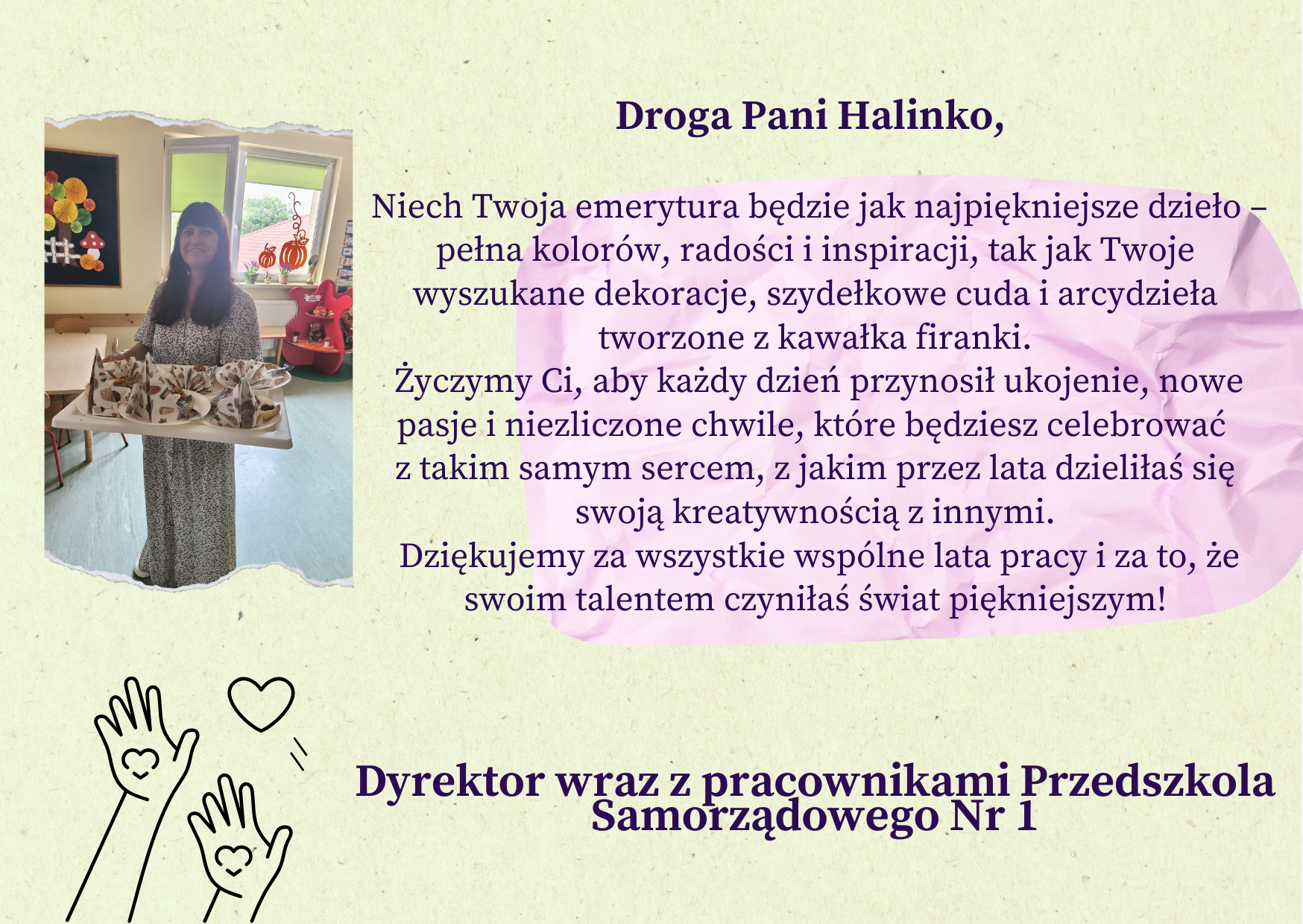 w imieniu wszystkich pracowników Przedszkola Samorządowego Nr 1