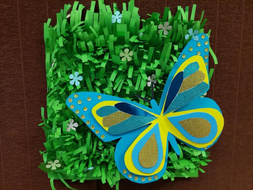 "Motyl na łące" - praca przestrzenna. Kółko plastyczne.