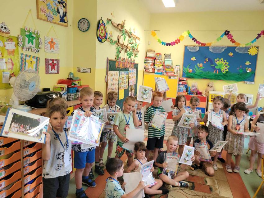 Zakończenie roku przedszkolnego w grupie Sówek-pożegnanie odchodzących dzieci .