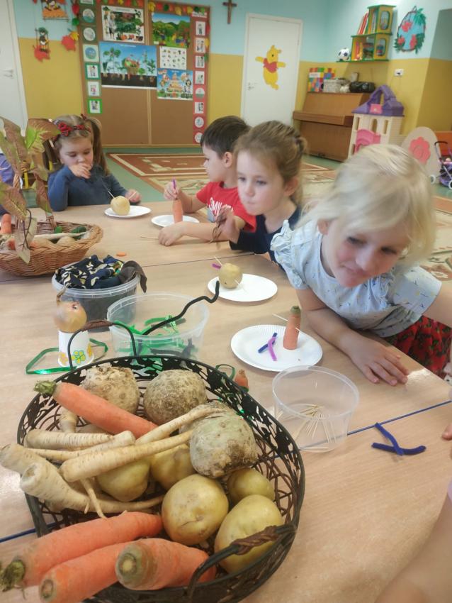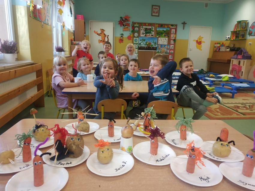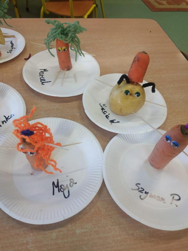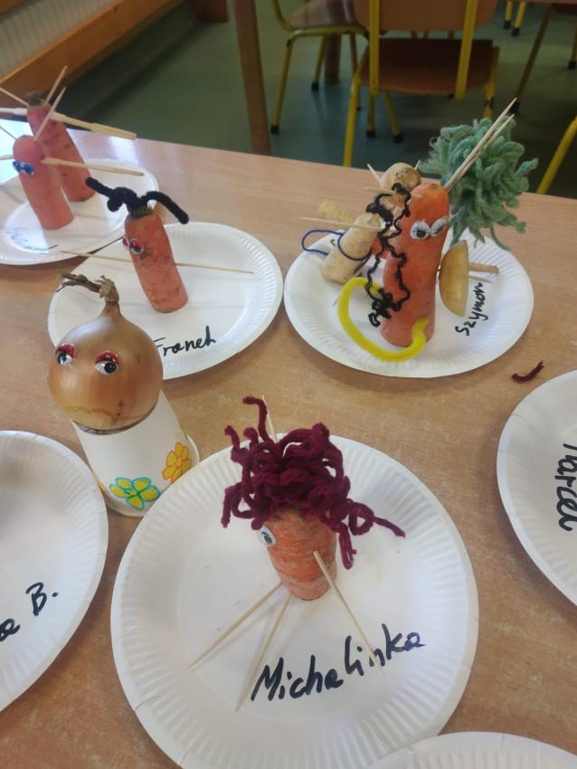 "Warzywne stworki" wykonane przez artystów z grupy Słoneczka