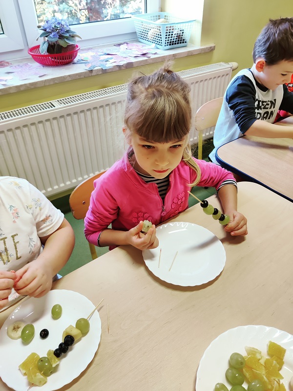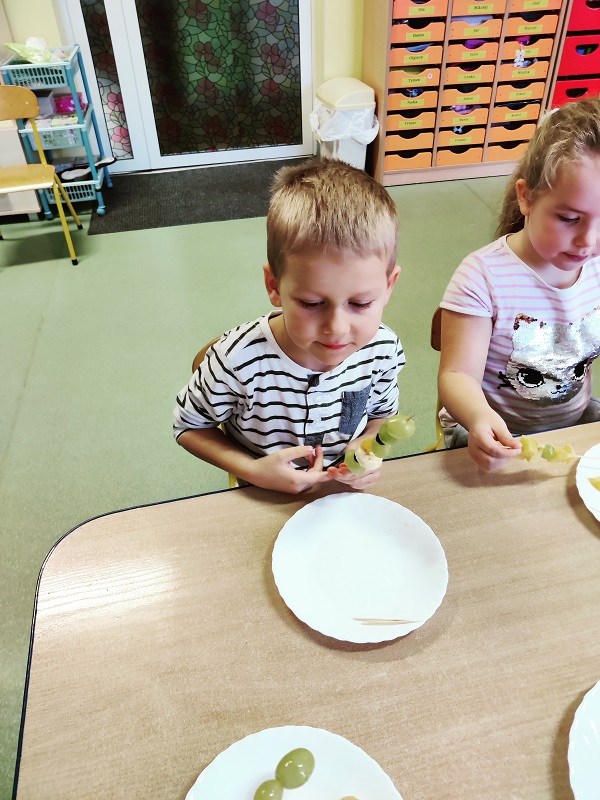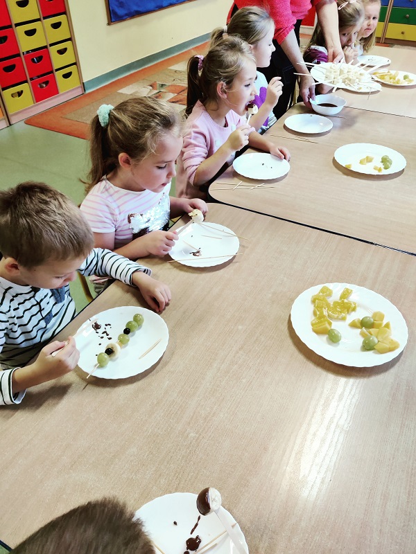 "Owocowe szaszłyki" - zajęcia kulinarne w grupie "Kotki"
