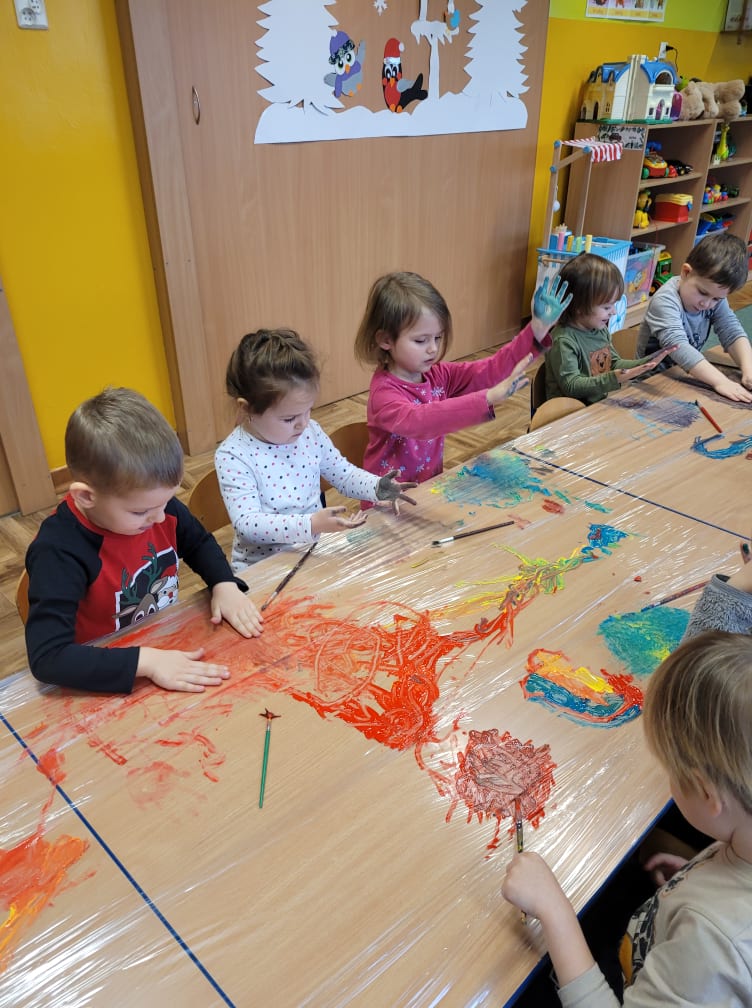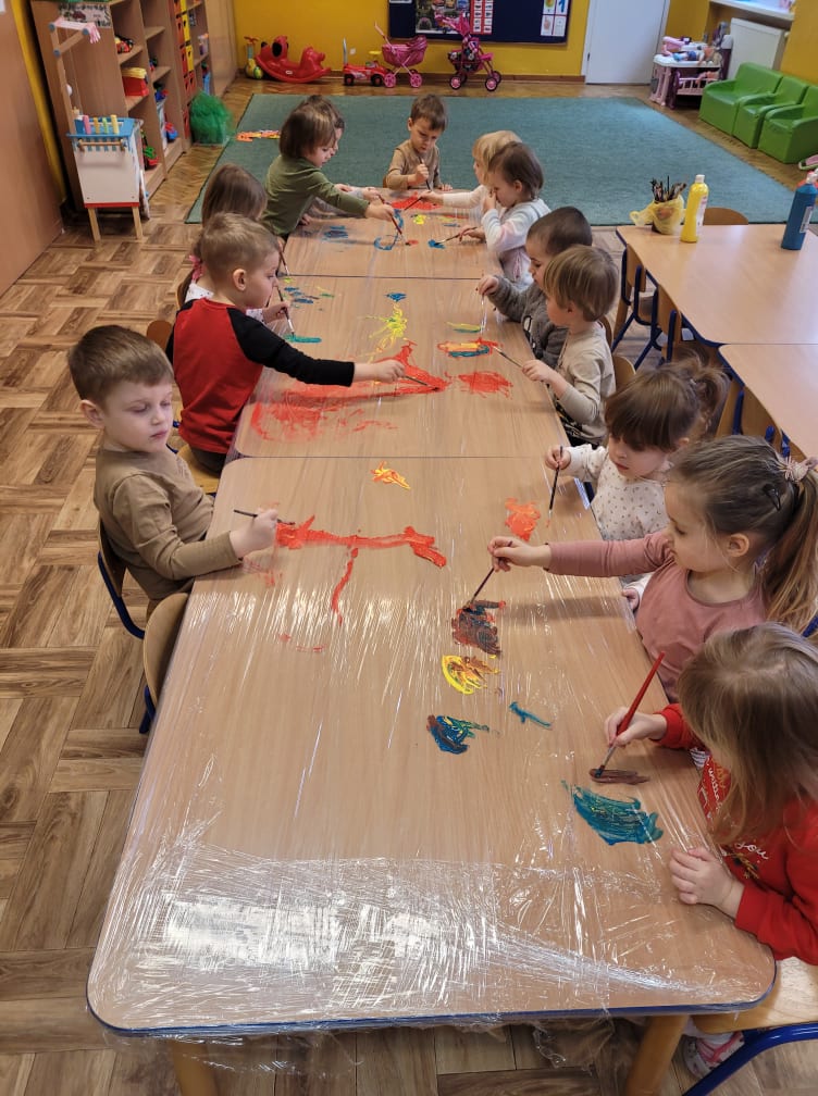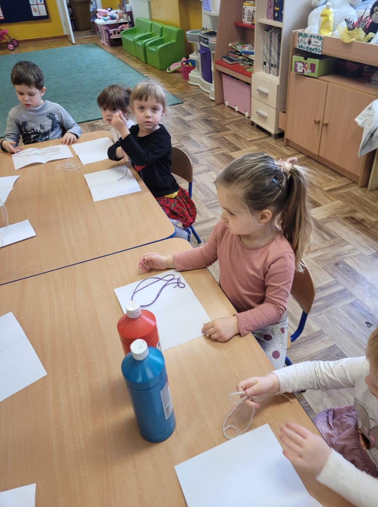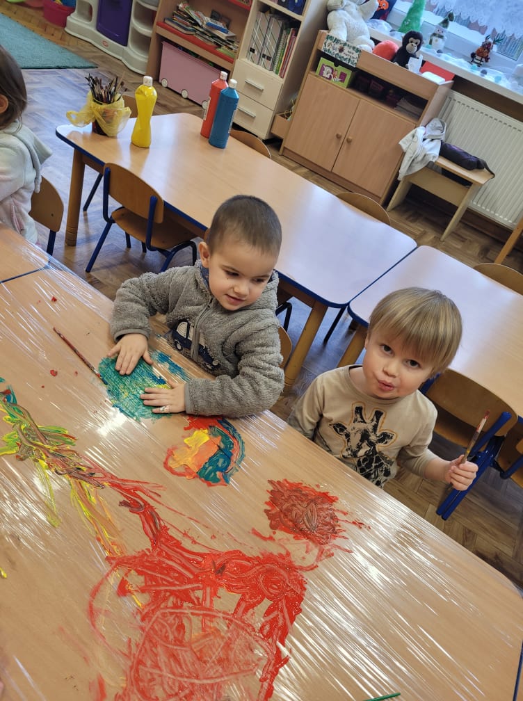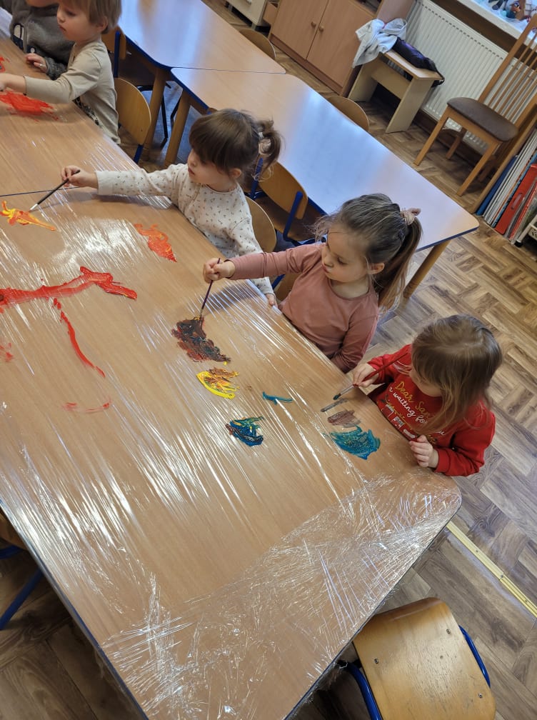 Zajęcia plastyczne w gr. "Sówki" i "Biedronki"