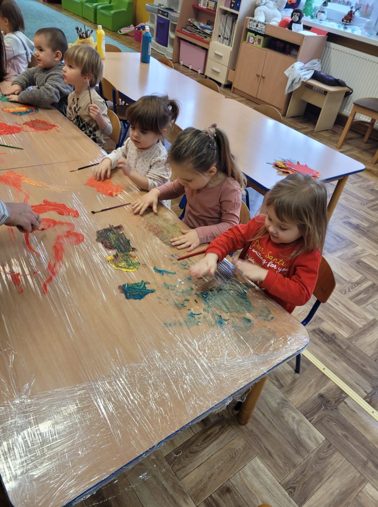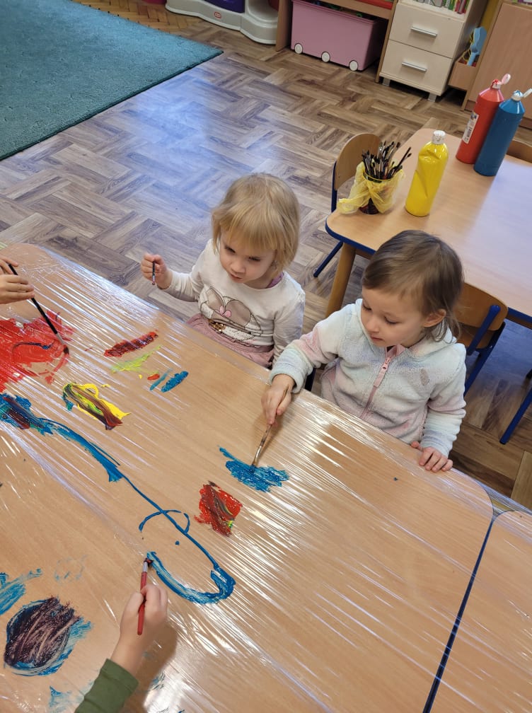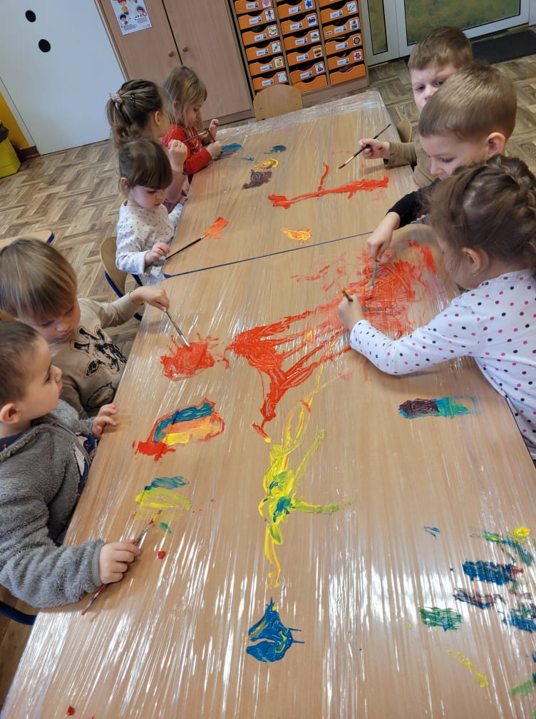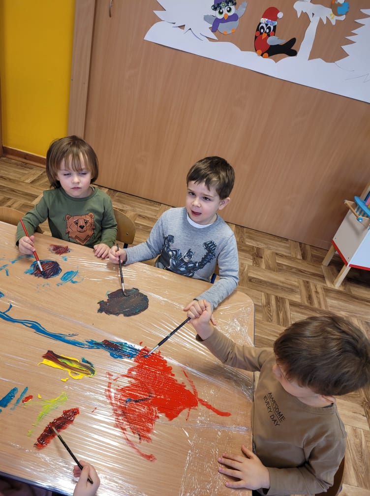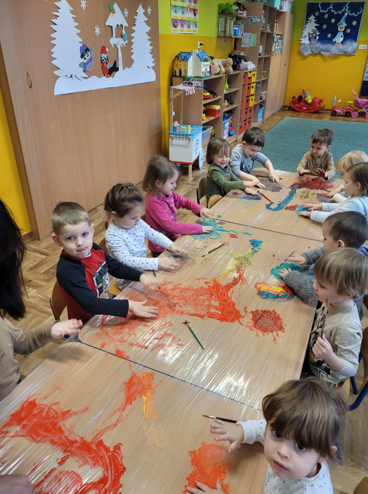 Zajęcia plastyczne w gr. "Sówki" i "Biedronki"