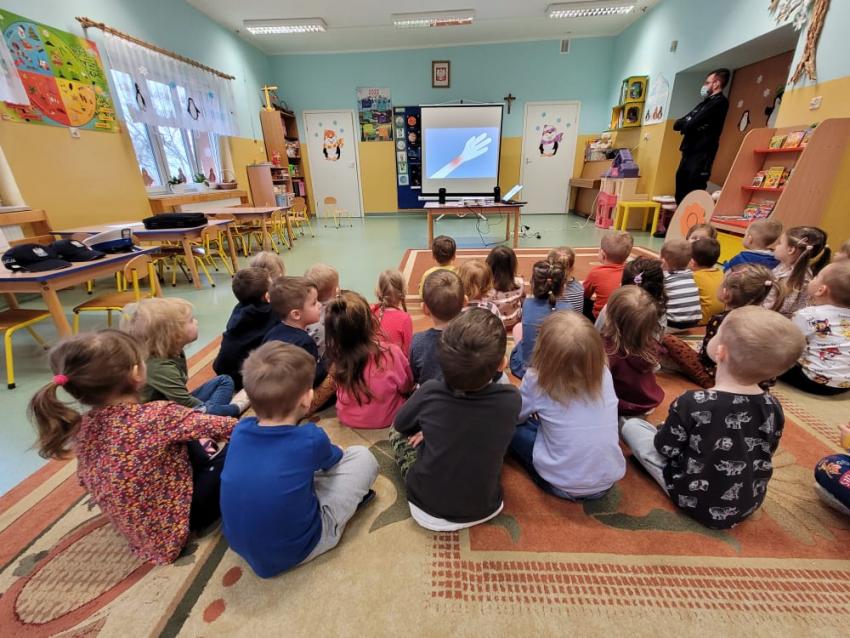 "Bezpieczne zachowania"- spotkanie z Policją w gr. "Biedronki"